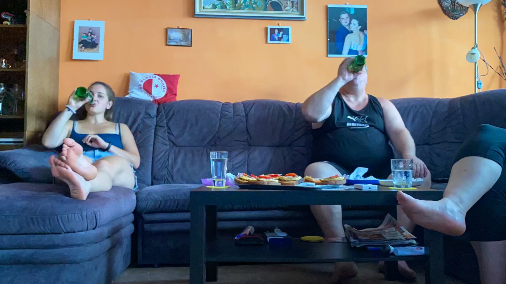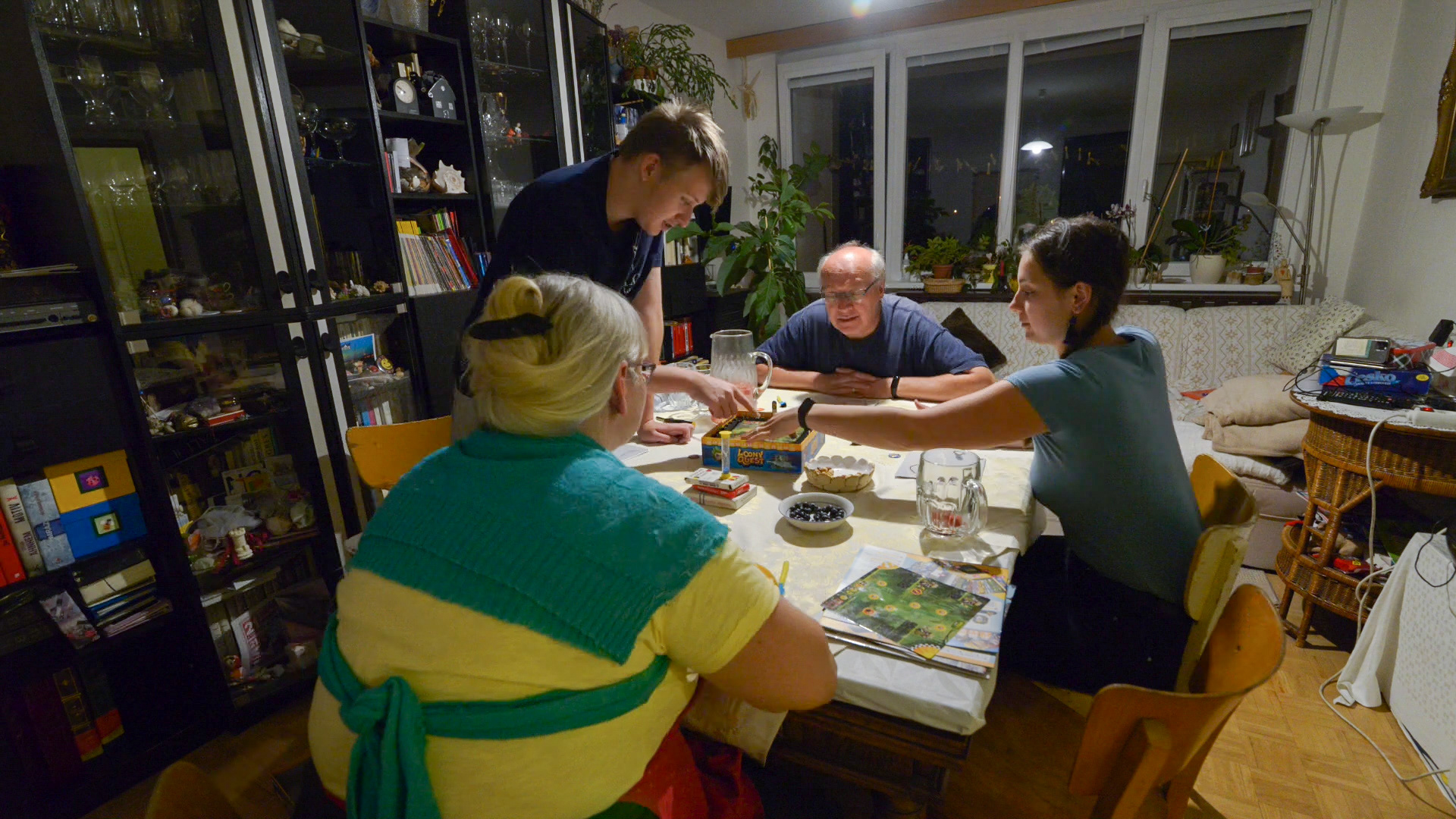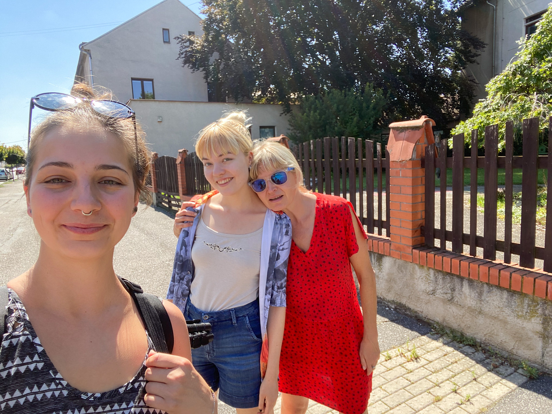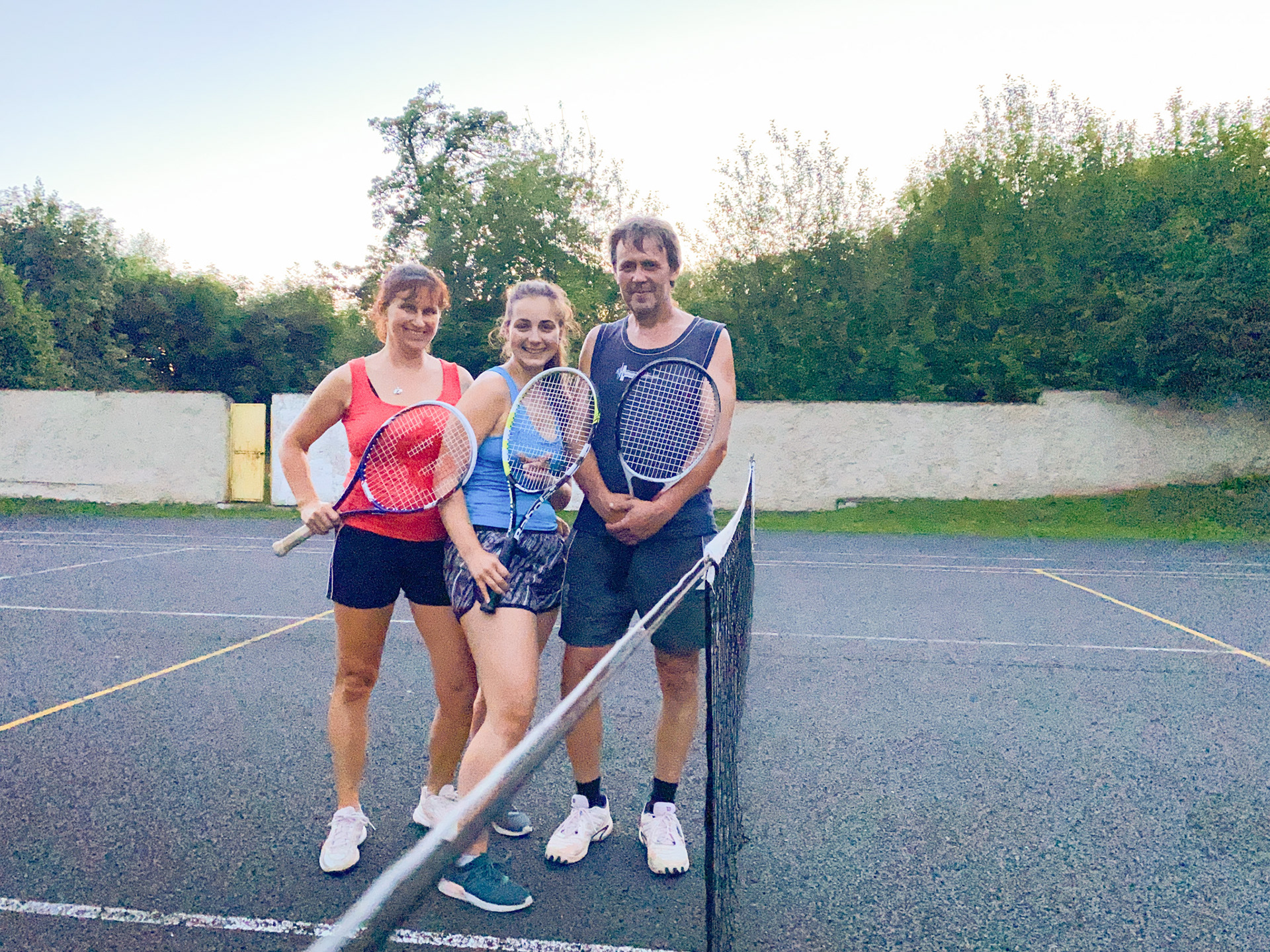 Dostávám Miruny raketu a vzpomínám na léta odehraného tenisu. Hraju s mámou proti tátovi a první hru prohráváme 0:6 na gemy. Dobrej kanár takhle na začátek, asi už jsem to po těch letech zapomněla. Druhou hru prohráváme 1:6. Poslední vedeme 2:1, ale padá tma a už není vidět na míčky, tiebreak s mamku opět prohrajem, ale i ta radost z těch pár vyhranejch setů byla. Fotka celého týmu nesmí chybět, natrháme ještě mlíčí pro morče a jedem domů.