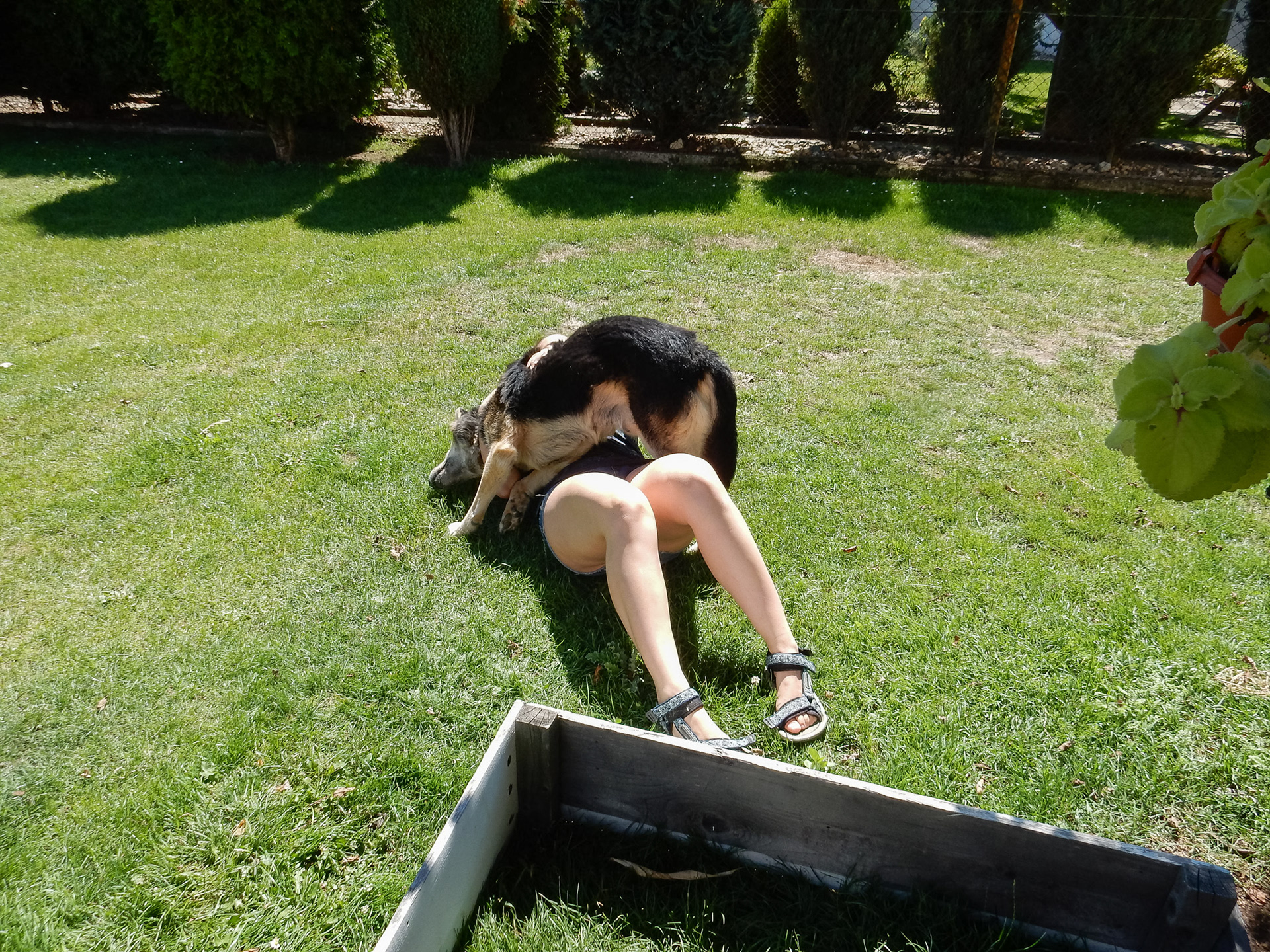 Ještě se naposledy pomazlím s Rexem. Smrdím jak mokrej pes a jsem šťastná.